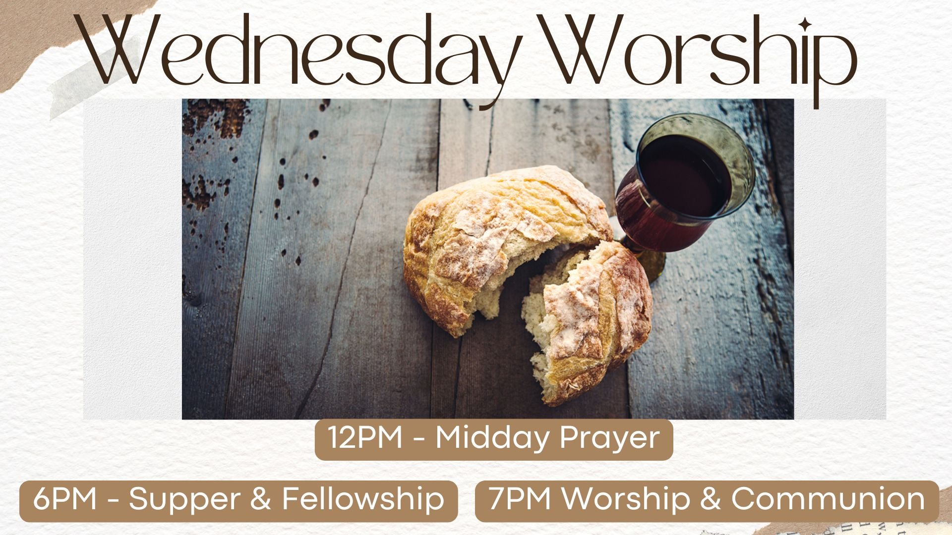 Come join us for Wednesday Worship! Fast with us if you are able, join us for midday prayers at noon in the sanctuary (or wherever you are at that time), and then gather with us as we break our fast with a potluck supper together at 6 PM, followed by a worship service at 7 PM that focuses on cultivating deeper intimacy with God including digging into the Word, listening prayer, communion, and worship. We are excited to sacrifice with you as we make space to come into His Presence together!